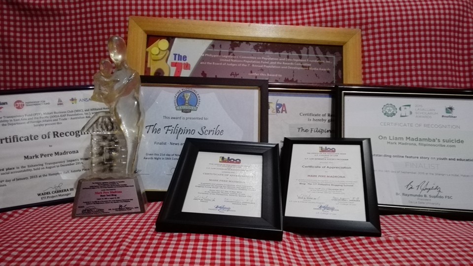 Last 2015, it was one of the finalists in the 2015 Lasallian Scholarum Awards for Best Online Feature Article in Youth and Education and in the first-ever Philippine Blogging Awards (#BloggysPh) held in November.