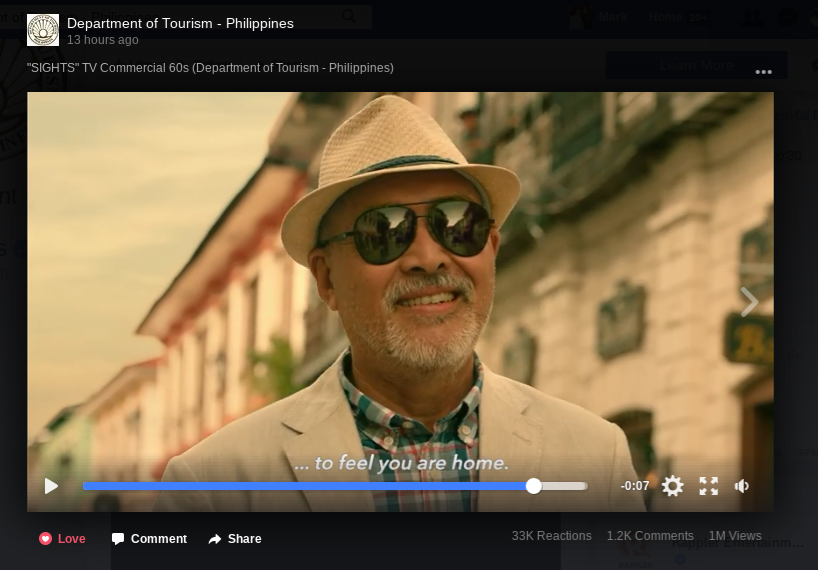 In the said 60-second advertisement, a Japanese retiree identified as M. Uchimura can be seen sharing his experiences as a tourist around the country. It already has over one million views on Facebook as of early morning of June 13.